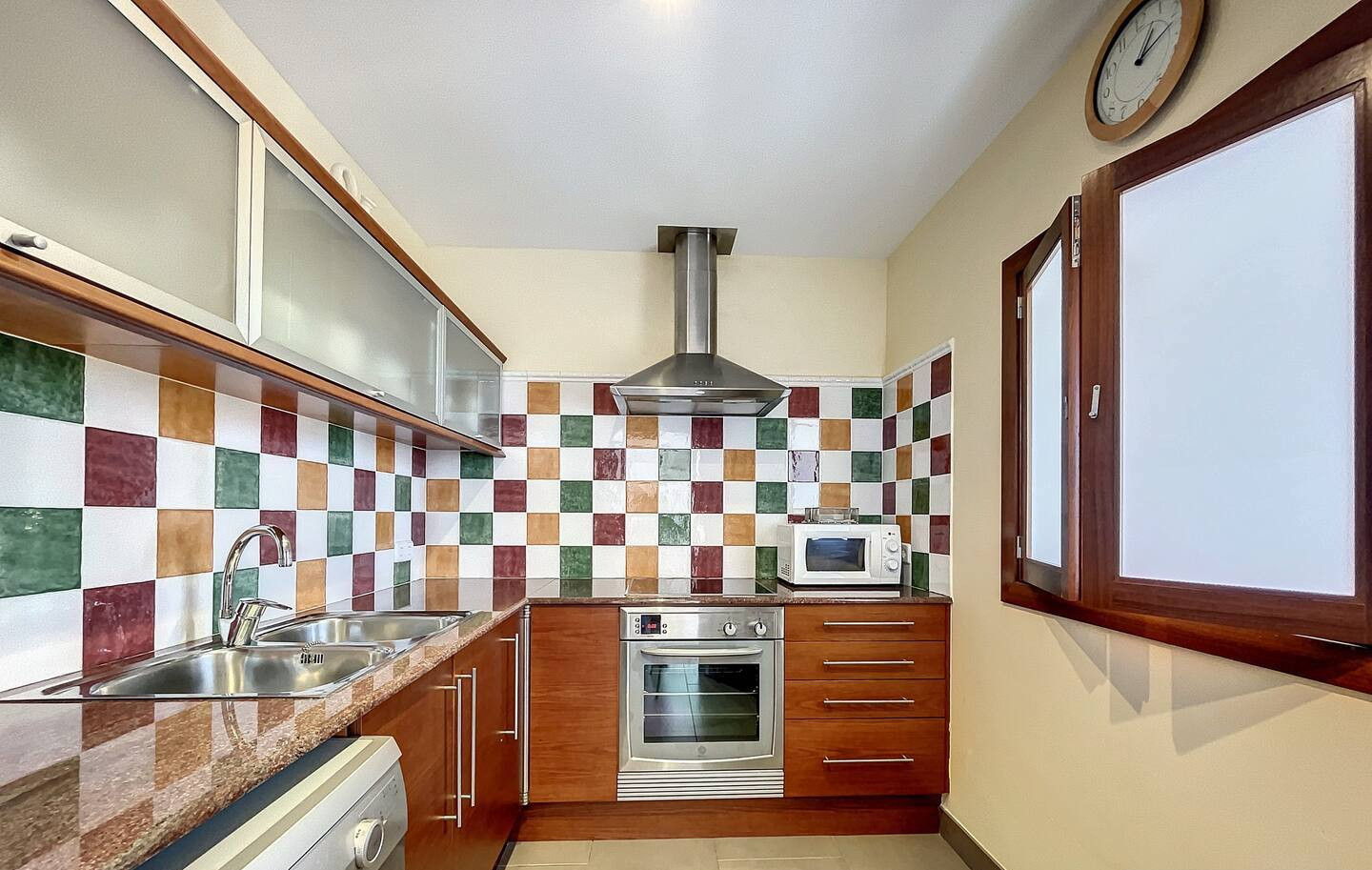 La cucina indipendente, a vetroceramica, è attrezzata con frigorifero, microonde, forno, congelatore, lavastoviglie, stoviglie/posate, utensili da cucina, caffettiera, tostapane e spremi agrumi.